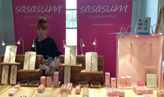 Filigranen Schmuck, der für Hingucker und Schmunzler sorgt, hat Kerstin Knott ("Sasasum") mitgebracht (www.instagram.com/sasasum_jewellery). Ihre gravierten Anhänger mit Sprüchen wie "I'm fucking brilliant" oder "Mommy need a Prosecco" kommen super ab.