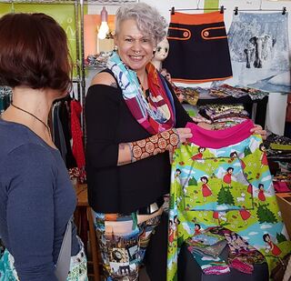 Das ist doch mal ein Hingucker: Manu Geiger aus Berg (hullaballo-gluexmadam@web.de) näht und vertreibt unter dem Label "Hullaballoo Glüxmadam" flippige Wohlfühlkleidung. Die ausgefallenen Stoffdrucke - hier Heidi - finden bei mutigen Damen jeden Alters Anklang.