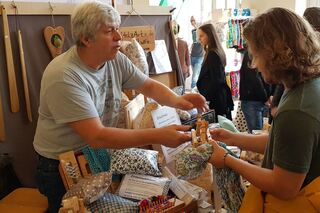 Upcycling ist ein großes Thema: Lisa Vöhringer von "Morendo Memoria" aus Schramberg zeigt beispielsweise, wie aus alten, nicht mehr funktionstüchtigen Schallplatten Schüsseln, Notizbücher und Armreifen hergestellt werden. Ein Hingucker bei ihr ist Schmuck aus Draht mit Nagellacküberzug. Sie ist auch immer wieder Gast in Fernsehsendungen wie "ARD-Buffet" und "Kaffee oder Tee" beim SWR und zeigt dort, wie sich solche neuen Produkte aus Altgedienten herstellen lassen.