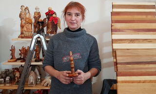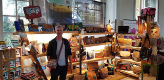 Schreinermeister Robby Ellwitz (www.holzarte.de) aus Wolpertshausen hat unter anderem viele Zirbenprodukte mitgebracht. Joshua hat hier eine "Gummibärchenschleuder" für den kleinen Bruder gefunden.