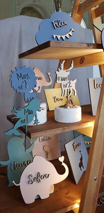 Filigrane Holzschriftzüge, -sprüche und -namen aus Viernheim: "Licht & Poesie" (www.lichtundpoesie.de) heißt die Marke von Senka Höhnke, die mit Ehemann Steffen beim Designmarkt in Schwetzingen weilt. Das Holz für ihre Arbeiten kommt aus dem Odenwald.