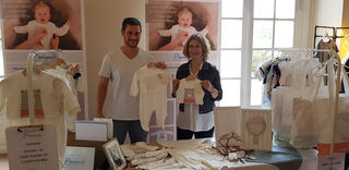 Raffinierte Idee, die das Leben von jungen Eltern erleichtert: Jörg Brabez stellt mit Kollegin Birgit Reinhard "Pimima" (www.pimima.de) vor, den wandelbaren Strampler vor. Wenn Babys gerne spucken, ist der Strampler schnell feucht und muss gewechselt werden. Bei "Pimima" wird einfach ein aufgesetzter Latz ausgetauscht, der mit Druckknöpfen festgemacht wird.