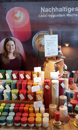 "Sinn Licht" (www.sinn-licht.de) von Beate Odenwald und Dennis Bayer aus Karlsruhe ist eine besondere Kerzenmanufaktur: Hier werden Kerzen aus recyceltem Wachs produziert - handgemacht und nachhaltig. Und: 5 Prozent des Umsatzen werden an ein soziales Projekt.
