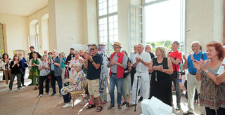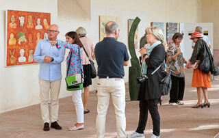 Gäste und Künstler im Gespräch.