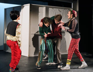 Mosca (Tunay Tuncali) schaut zu, wie der aufbrausende Riccio (Maximilian di Salvo) von Prosper (Felix Rieseberg) und Wespe (Lara Krahlisch) zurückgehalten wird.