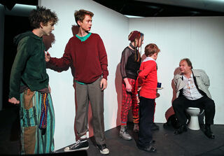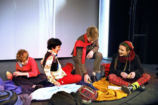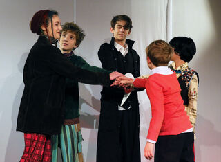 Wie geht's weiter ohne Scipio? Wespe (Lara Krahlisch), Riccio (Maximilian di Salvo), Bo (Simon Speer), Mosca (Tunay Tuncali) und Prosper (Felix Rieseberg) beratschlagen die Lage.