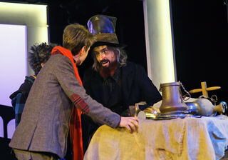 Gegenüber Barbarossa (Christoph Kaisers, r.) zeigt Prosper (Felix Rieseberg) ein großes Talent beim Verhandeln über den Preis des Diebesguts.