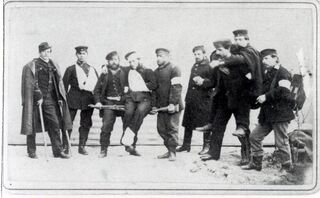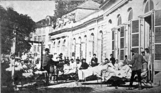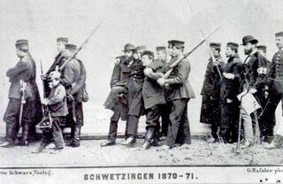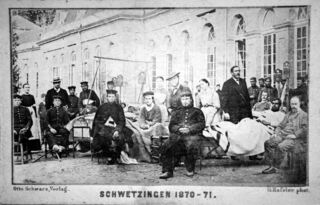 Verwundete 1870-71 werden durch dieSanitätskolonne Schwetzingen ins Lazarett verbracht.