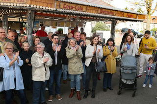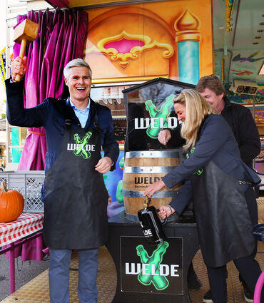 Bürgermeister Matthias Steffan, Kerwe-Organisatorin Conny Clark und Wele-Gebietsleiter Jens Kietzmann.