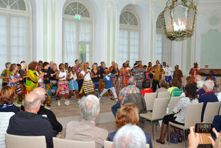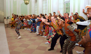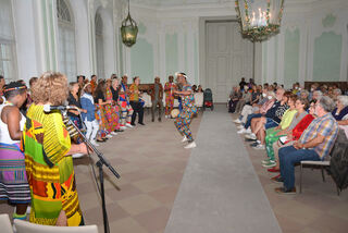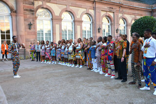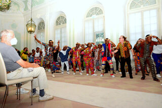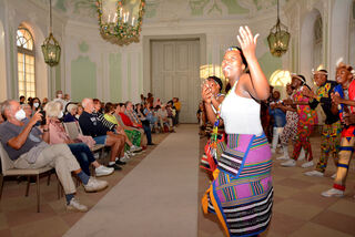 Derart vielfältige Farben und Impulsivität sieht die ehrwürdige ehemalige Kurfürstenresidenz eher selten, die Moko- und Lesedi Chöre geleiten singend und tanzend ihre Gäste in den Abend.