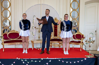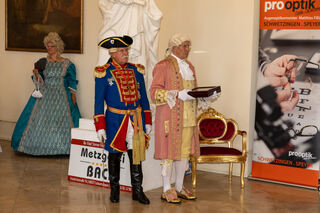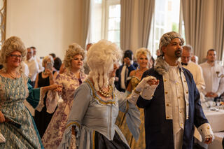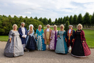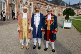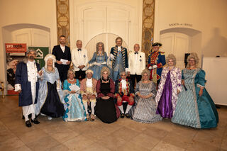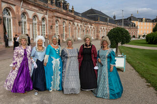 Gruppenfoto mit der Mannheimer Kurfürstin Viktoria Luise, rechts der Schwetzinger Hofmarschall Peter Much und links Manfred Butz.