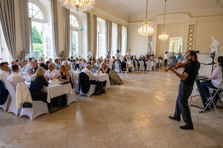 Live am Piano Irena Müller, Gesang Dominic Müller und an der Geige Samyr Sakyiv.