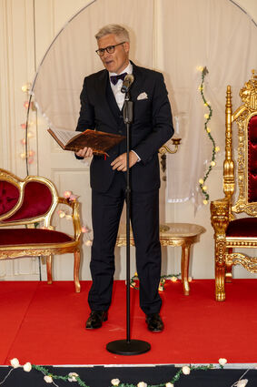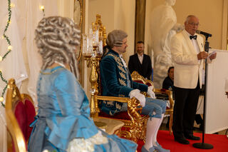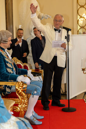 Matthias Steffan, Erster Bürgermeister von Schwetzingen, hält die Laudatio für den neuen Churfürsten.