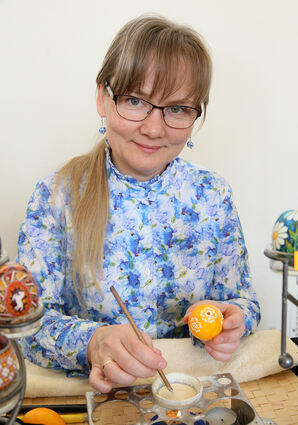Aleksandra Belica verziert das Ei mit warmem Wachs.