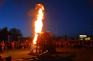 Eine große Stichflamme gibt schon weil einen Eindruck vom großen Osterfeuer.