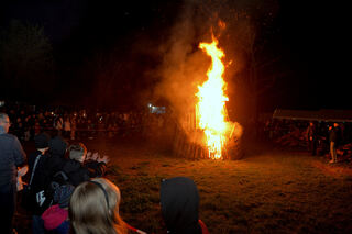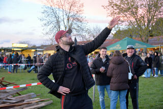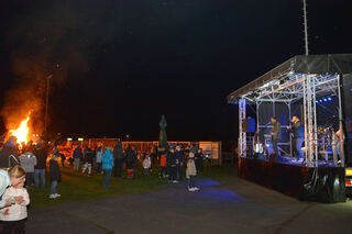 Auf der Bühne sorgen die Twisted Spoons für Laune, gegenüber das Osterfeuer für wohlige Wärme.