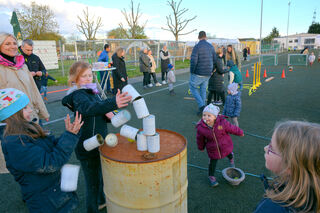 Leon hats drauf und trifft die Dosen mit fast jedem Wurf.