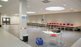 An diesem Tisch sitzt normalerweise eine Aufsichtsperson. Sie sorgt dafür, dass die Vorgaben eingehalten werden.