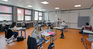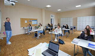 Unterricht mit Abstand: Lehrer Marcuss Weiss unterrichtet am Privatgymnasium die elfte Klasse.