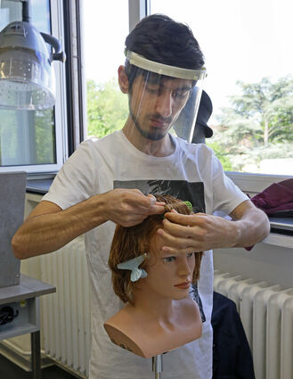 Baris Saman übt mit einem Gesichtsschutz für die bevorstehende Prüfung.