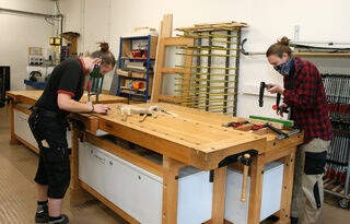 In der Holzwerkstatt der Ehrhart-Schott-Schule werken Isabel (l.) und Anna.