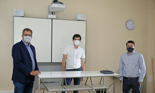 Uwe Rahn (v. l.), Christoph Lintner und Jörg Bader freuen sich, dass das Privatgymnasium nun wieder geöffnet hat. Aus Solidarität tragen sie Masken.