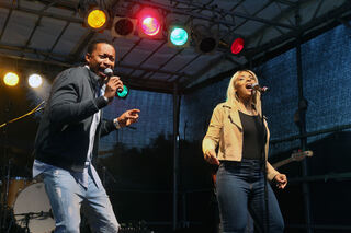 Es dauerte nicht lange, bis Klyive und Sängerin Amy Sue das Publikum an dem etwas kühlen Sommerabend aus seinen Stühlen gelockt und zum Tanzen und Mitsingen animiert hatten