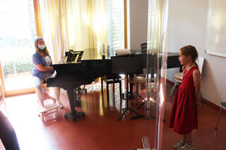 Elena Spitzner begleitet Karla (7) am Klavier.