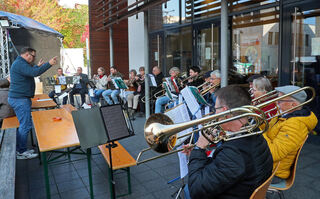 Ökumenischer Gottesdienst auf den Kleinen Planken mit dem Posaunenchor (Oftersheim/Schwetzingen/Ketsch) unter der Leitung von Ralf Krumm.