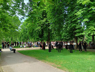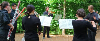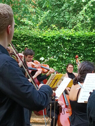 Beim Wandelkonzert "Musik im Garten" unterhielten Studierende der Hochschule für Musik Saar ein gut gelauntes Publikum mit Mozart und Strawinsky.