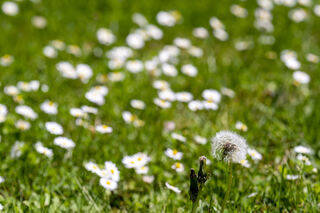 Überall im Park blüht es, nicht nur wie hier auf einer Wiese die Gänseblümchen.