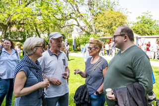 Überall gut gelaunte Menschen im lockeren Gespräch.