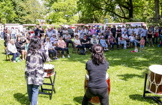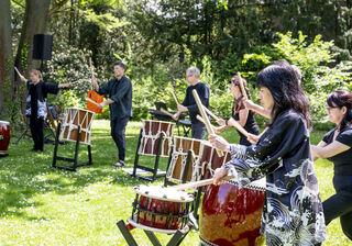 Die Trommelgruppe Taiko gibt ein Trommelkonzert.