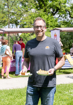 Das Speisenangebot findet guten Absatz, wie hier der leckere Kuchen.