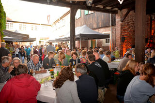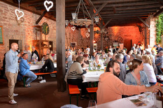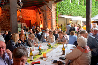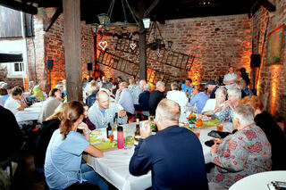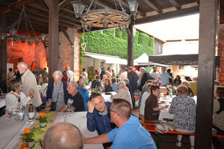 Ziel erfüllt: an großen Tischen sitzen plaudernde und genießende Menschen zusammen.