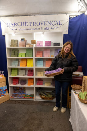 Anja Schilling freut sich auf viele Kunden in Ihrem Stand im Ehrenhof des Schwetzinger Schlosses.