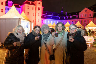 Genießen einen Glühwein vor einer tollen Kulisse: (vlnr) Gisela, Gracia, Jutta, Vitoriana und Petra aus Schwetzingen.