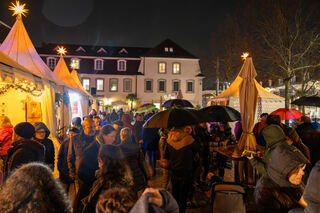 Eindruck vom Schwetzinger Weihnachtsmarkt bei einer kurzen Regenpause