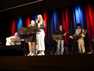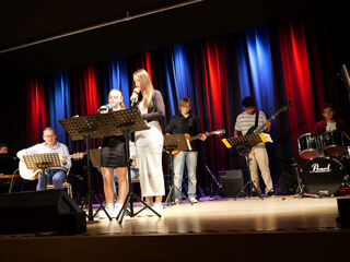 Die Schulband tritt mit den Sängerinnen Ida-Louise Hoberg (links) und Melina Reiß auf.
