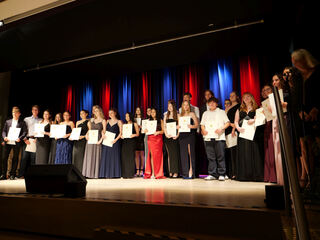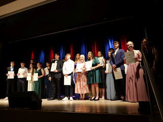 Die Klasse 10c freut sich über ihre Zeugnisse.