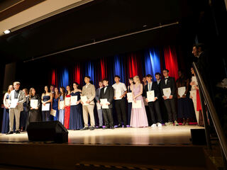 Die Klasse 10a zeigt stolz ihre Zeugnisse.