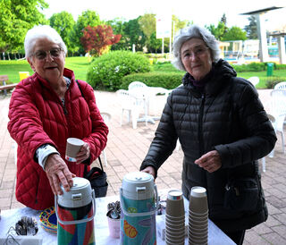 Liesel Wiegand (l.) und Marianne Hamprecht wärmen sich mit einem Kaffee.