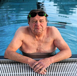 Ulrich Kirchner macht eine Pause am Beckenrand. Dann geht es weiter.