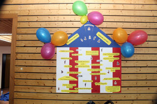 Die Sponsoren des "Zirkus Jahnelli" werden bei der Veranstaltung zum Dank auf einer bunt geschmückten Tafel aufgelistet.