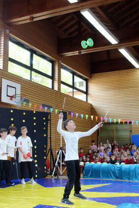 Die Zirkusartisten bringen mit dem Diabolo das Publikum zum Staunen.