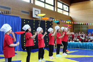 Gekonnt lassen die Köche die Teller auf ihren Stöcken kreisen.