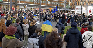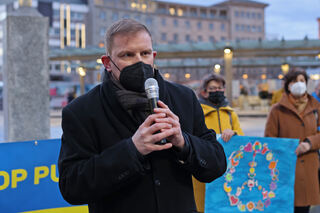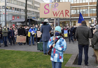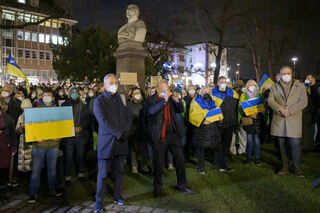Auch in Ludwigshafen gab es eine Kundgebung, um Solidarität mit der Ukraine zu zeigen.