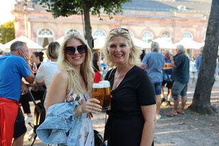 Isabell und ihre Mama Anja genießen die Vorfreude auf das Konzert mit einem leckeren Bier.