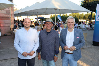 Freuen sich auf eine musikalische Zeitreise: Pascal Seidel (v. l.), Bürgermeister von Oftersheim, Dr. Rene Pöltl, Oberbürgermeister von Schwetzingen, sowie Matthias Steffan, Erster Bürgermeister von Schwetzingen.