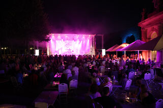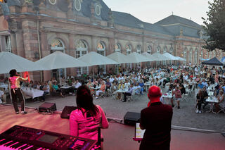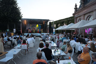 Immer wieder ist das Schwetzinger Schloss eine tolle Kulisse für Veranstaltungen wie hier das Eröffnungskonzert von Sommer im Schloss mit der "The Michael Jackson Tribute Show" vor dem Restaurant "Theodors".